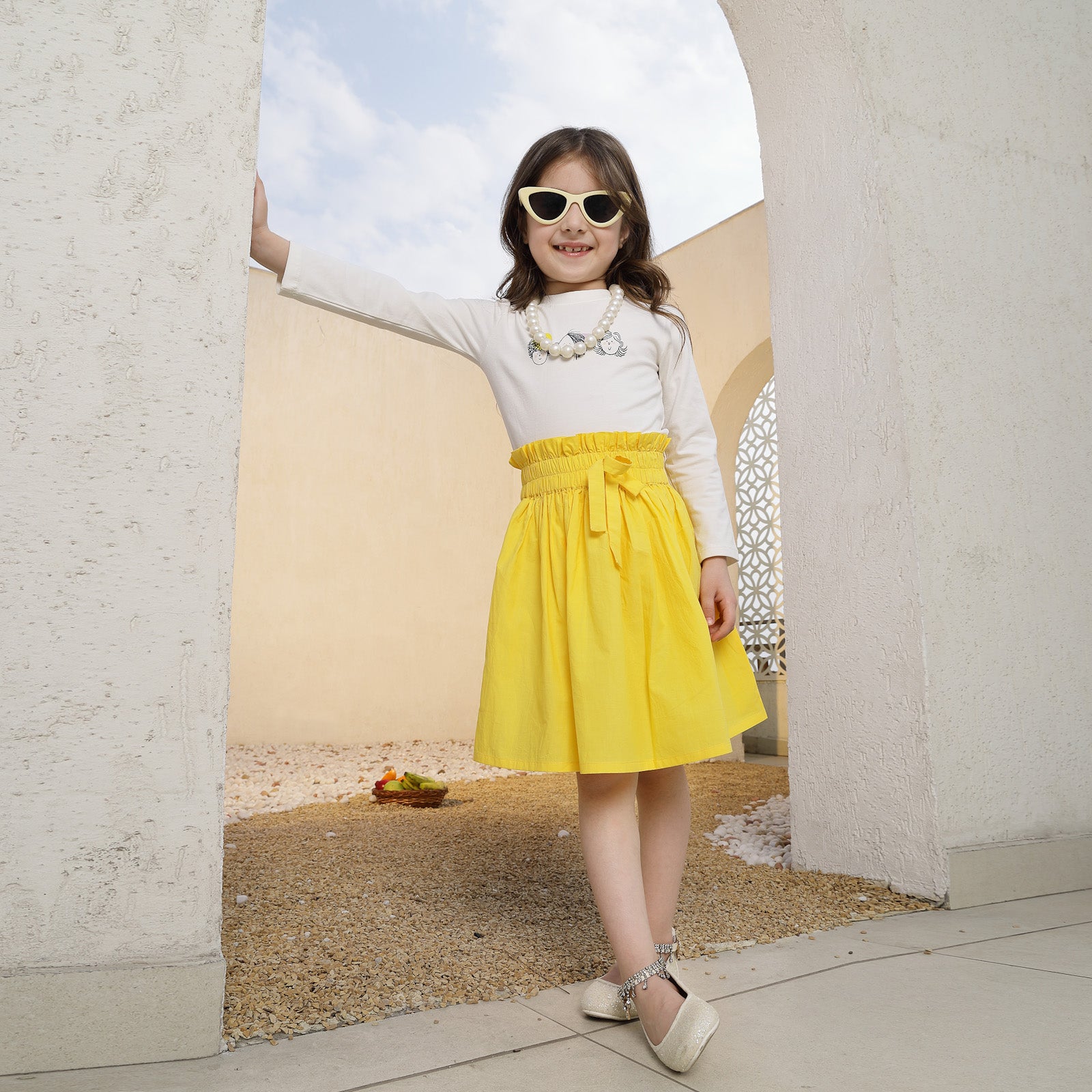 Let the sunshine in with the Golden Glow Flare Skirt! Made from soft, breathable woven cotton poplin, this cheerful yellow skirt is as light and breezy as a perfect summer day. The flared silhouette adds a playful twirl with every step, while the ruched, paper-bag waist keeps things comfy and stylish. And let’s not forget the sweetest little bow at the center front—because every sunny adventure deserves a charming detail!