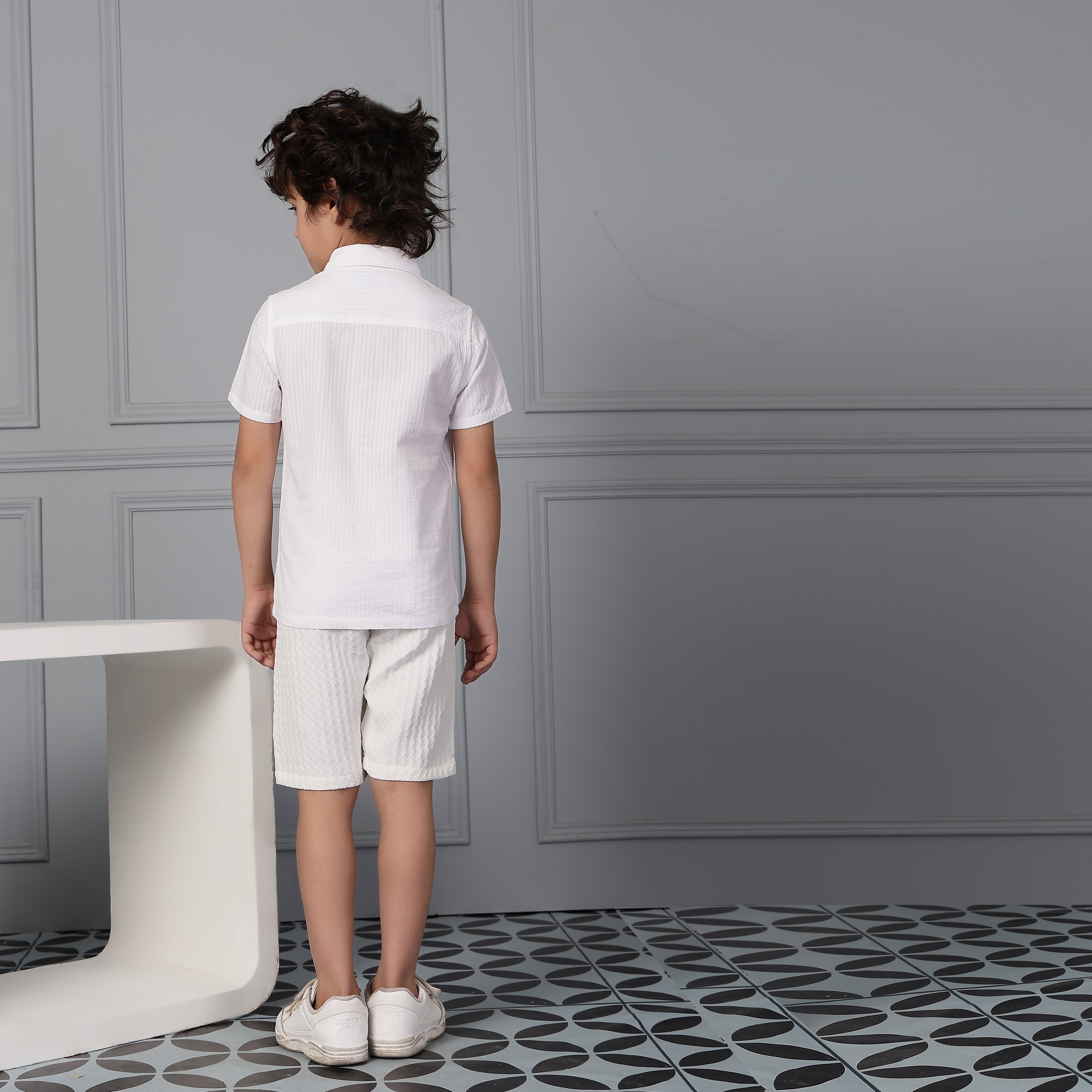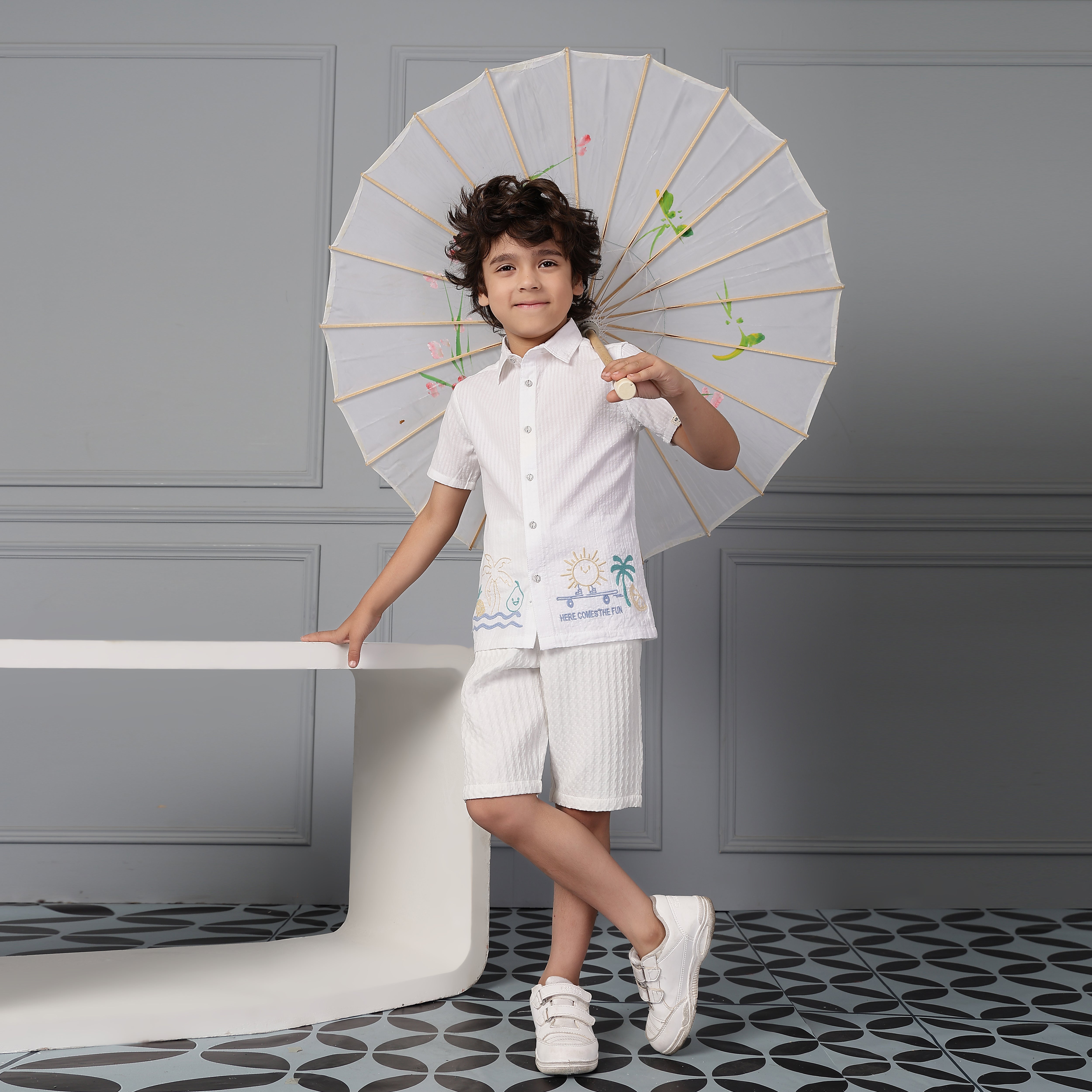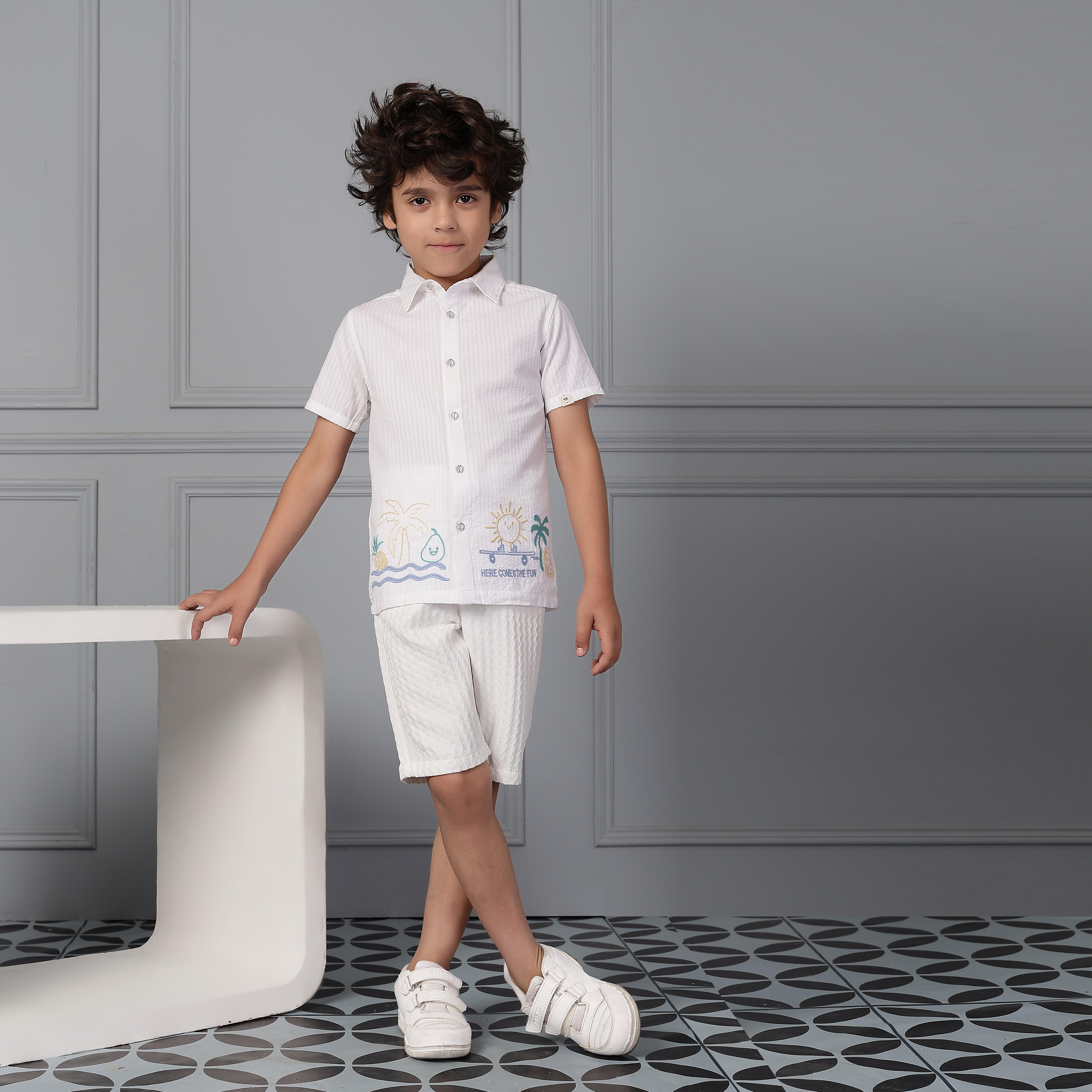 Made from soft white waffle cotton, this shirt blends comfort with playful charm. Designed with a classic cutaway collar, half sleeves, and fun embroidery at the front hem, it’s finished with signature Cookie Pookie buttons - perfect for little adventurers.