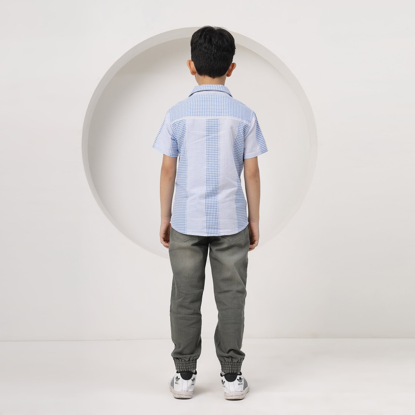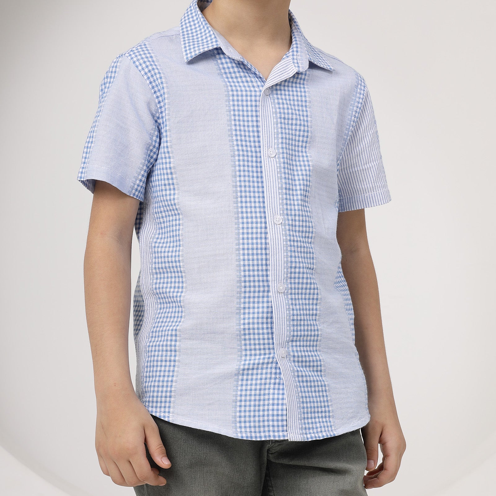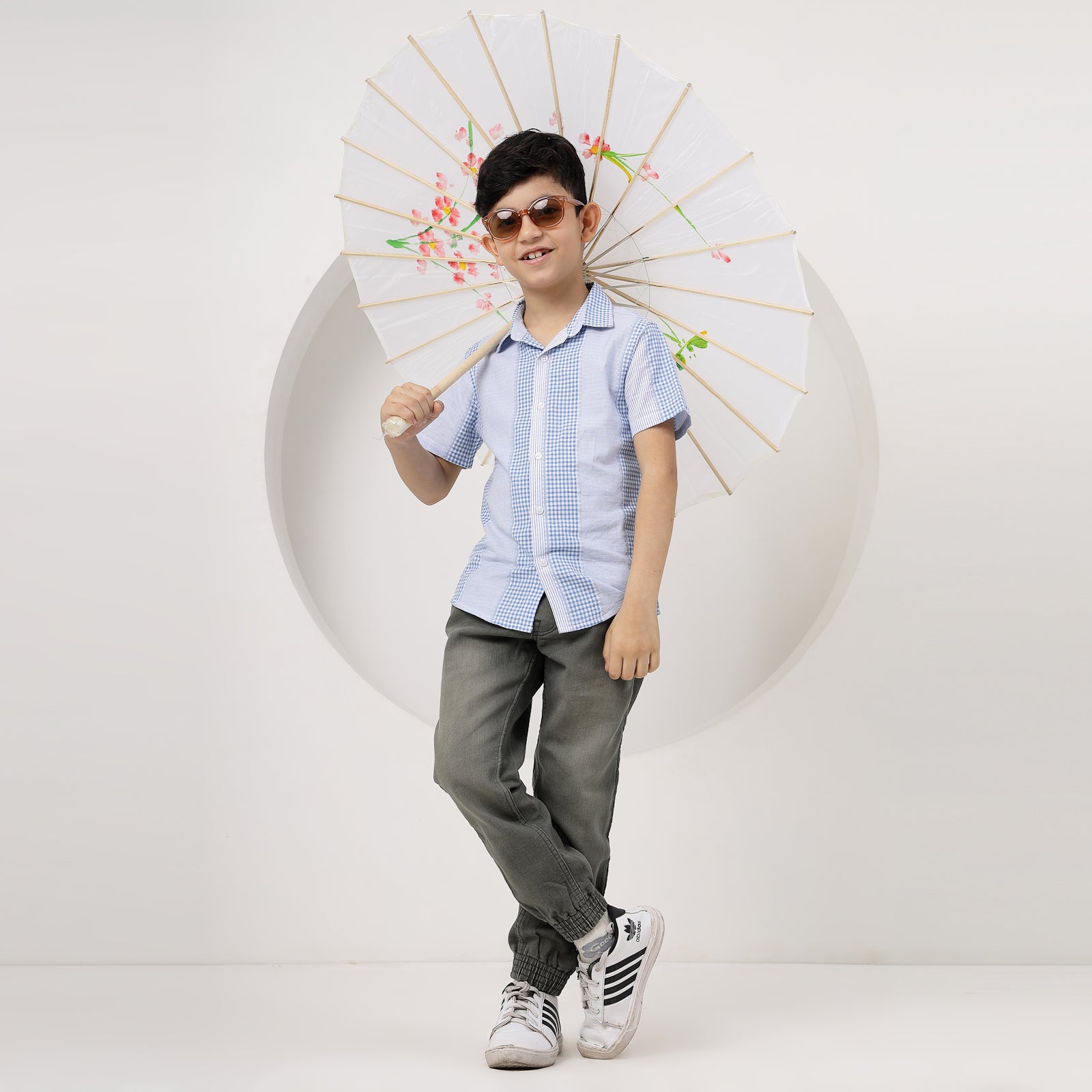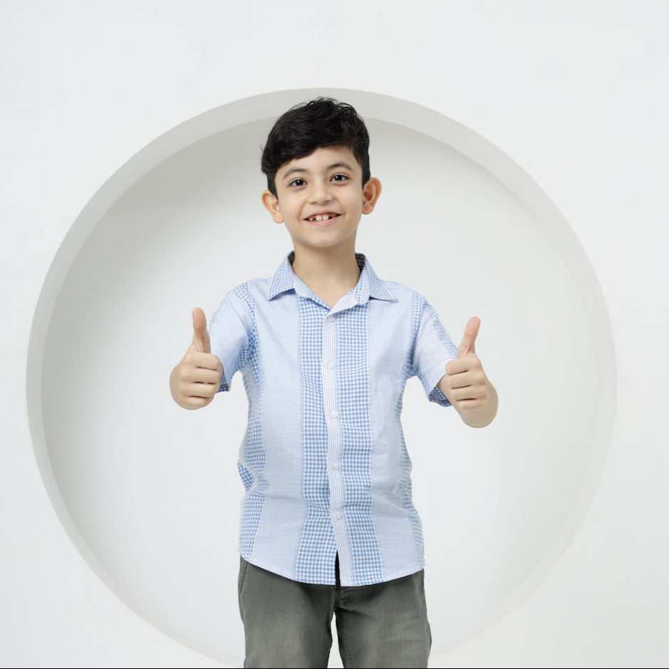 Let your little one stay cool and stylish in our Blue Breeze Shirt. Crafted from soft, breathable fabric with a yarn-dyed blue and white pattern, this shirt blends classic charm with everyday comfort. Featuring a classic collar, half sleeves, and Cookie Pookie logo-printed buttons, it’s perfect for playful adventures and special occasions alike.