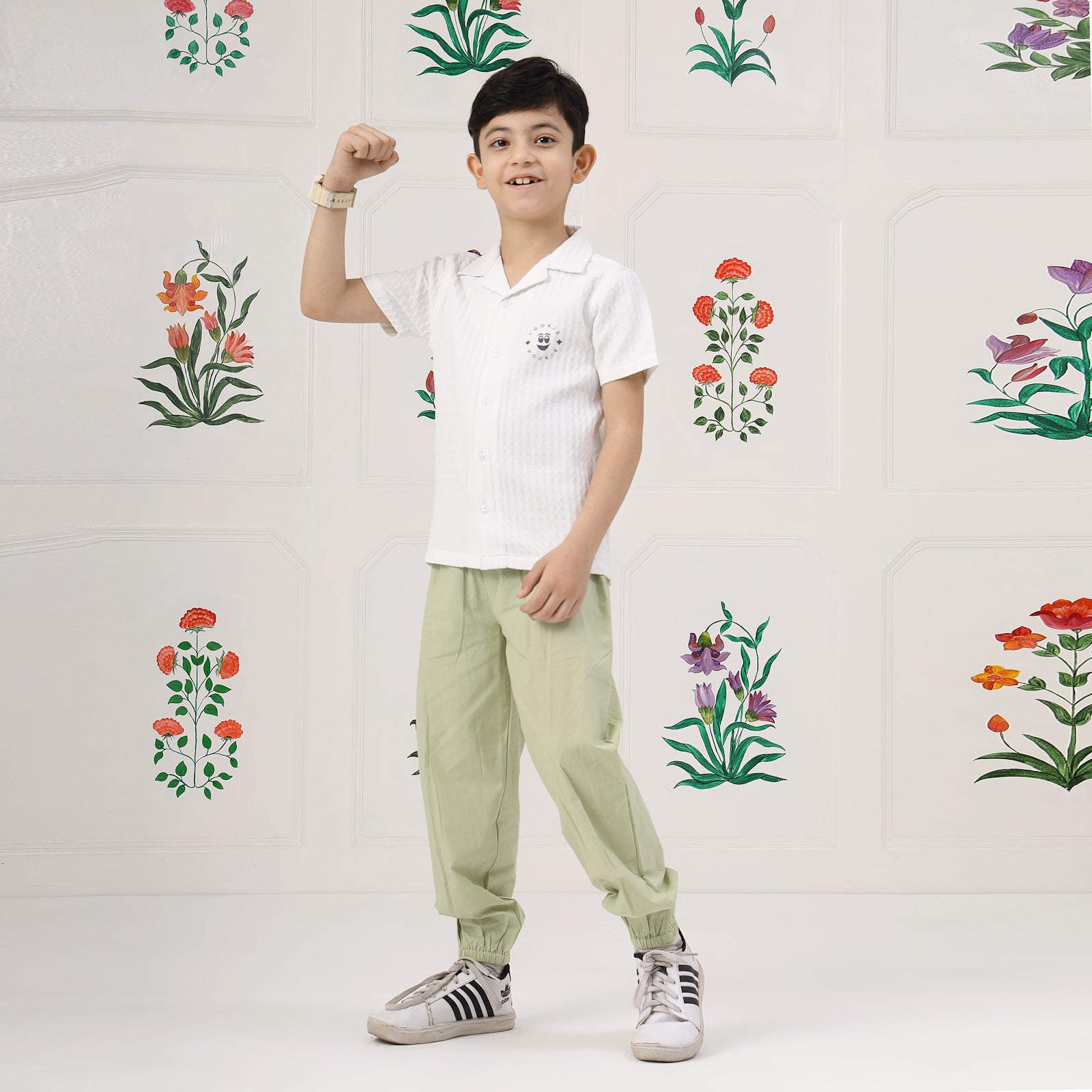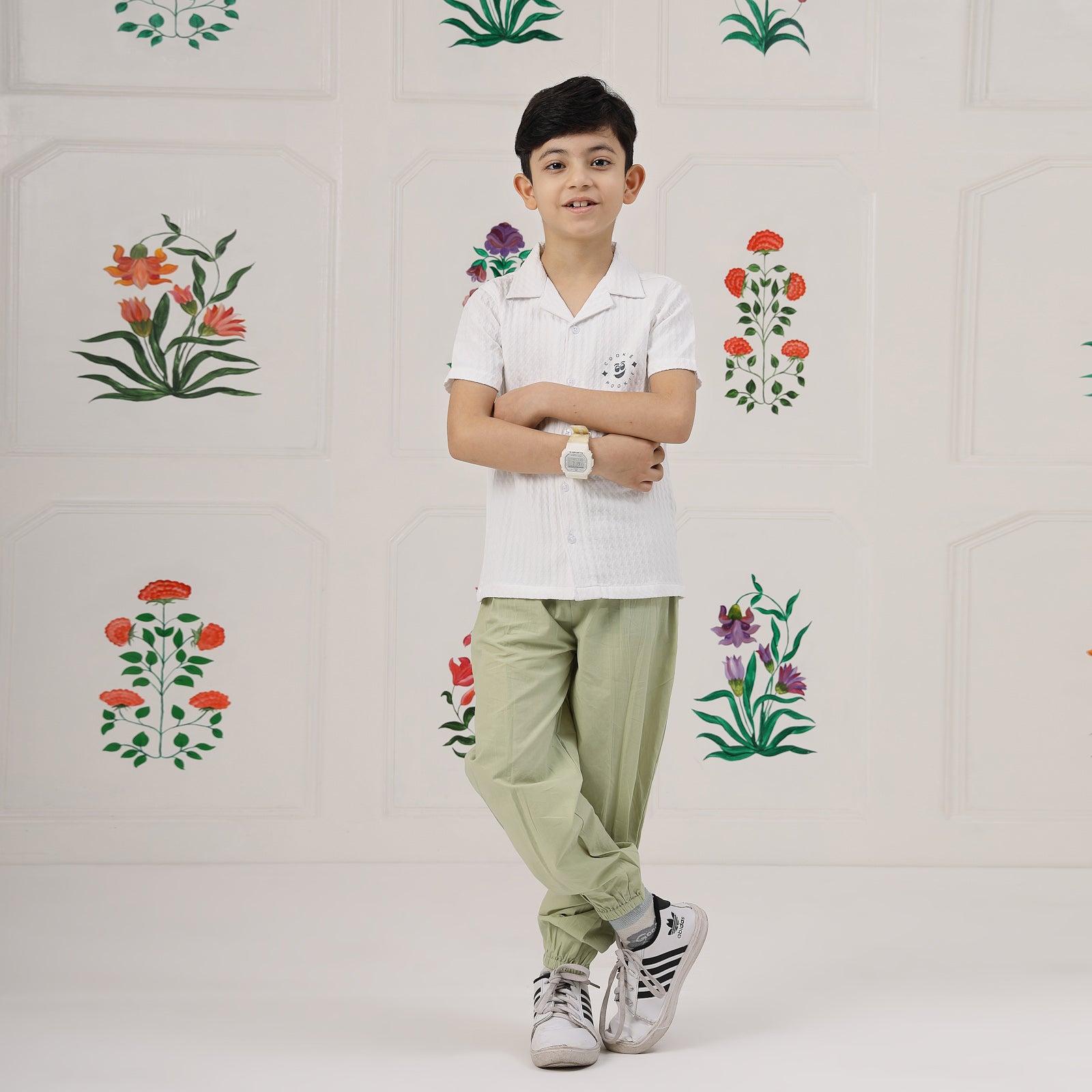 The Cloud Breeze Shirt is a must-have for warm days, crafted from breathable woven cotton poplin with a unique Dobby seersucker texture. Featuring a white cotton waffle fabric, a stylish cutaway collar, and half sleeves, this shirt is designed for all-day comfort and effortless style. With classic Cookie Pookie buttons and a relaxed fit, it’s perfect for little ones on the move.