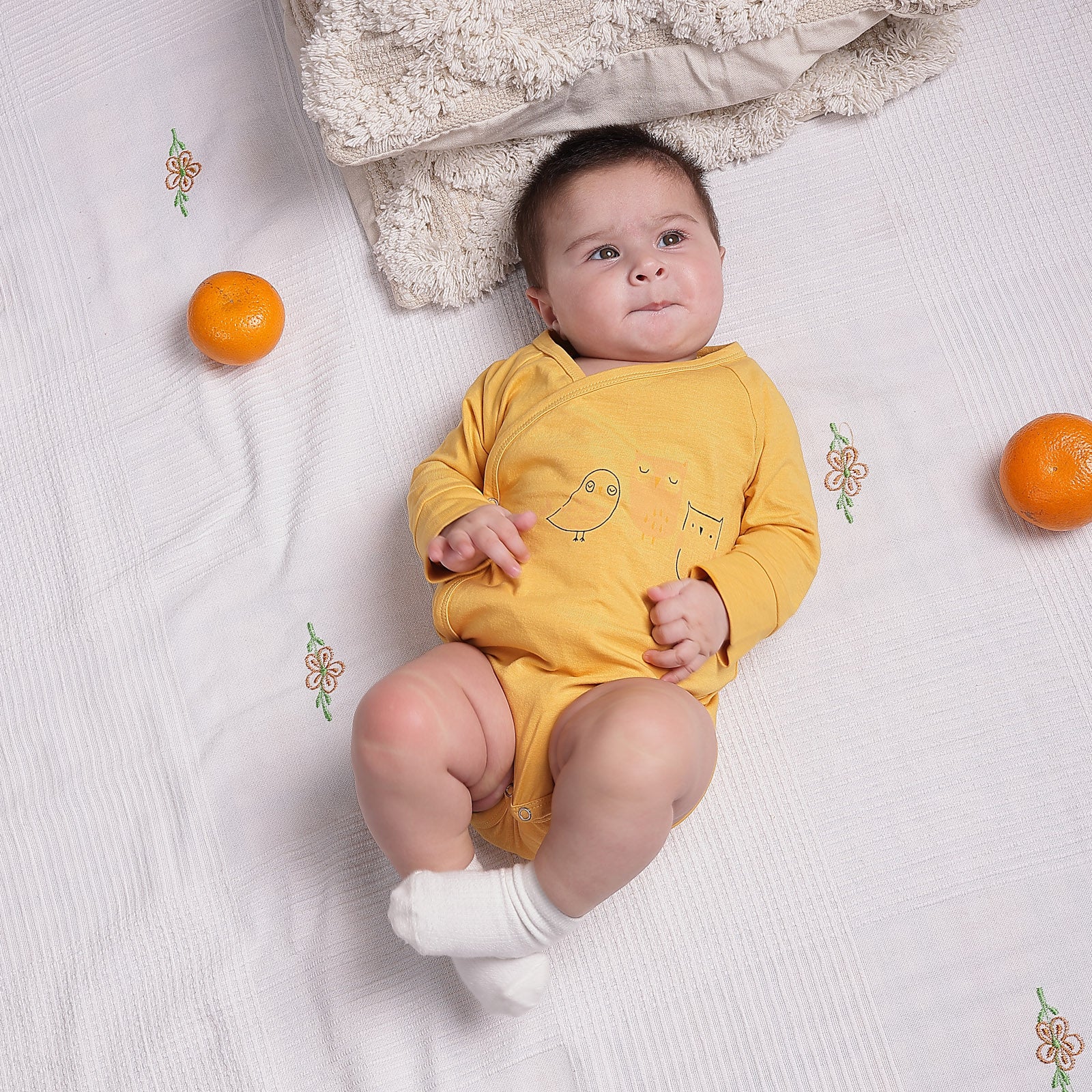 Wrap your little one in the cosy charm of our Little Hoot Onesie! Made from soft, breathable knit fabric, this classic yellow onesie is designed for all-day comfort. The extended front placket makes dressing a breeze, while the ribbed sleeve hems add a snug fit. And for an extra dose of cuteness—there’s a playful little owl perched on the back, ready to tag along on every tiny adventure!