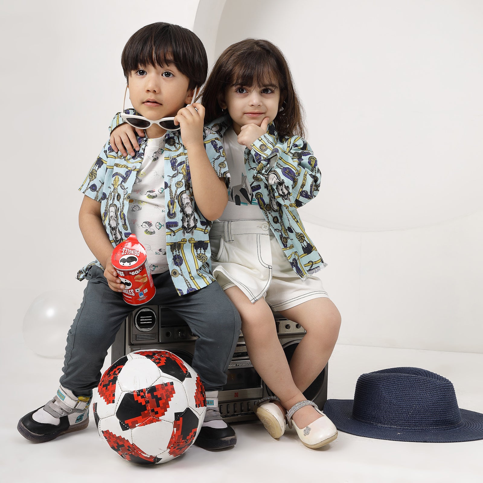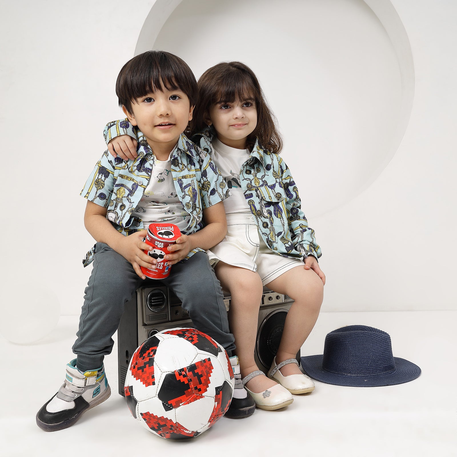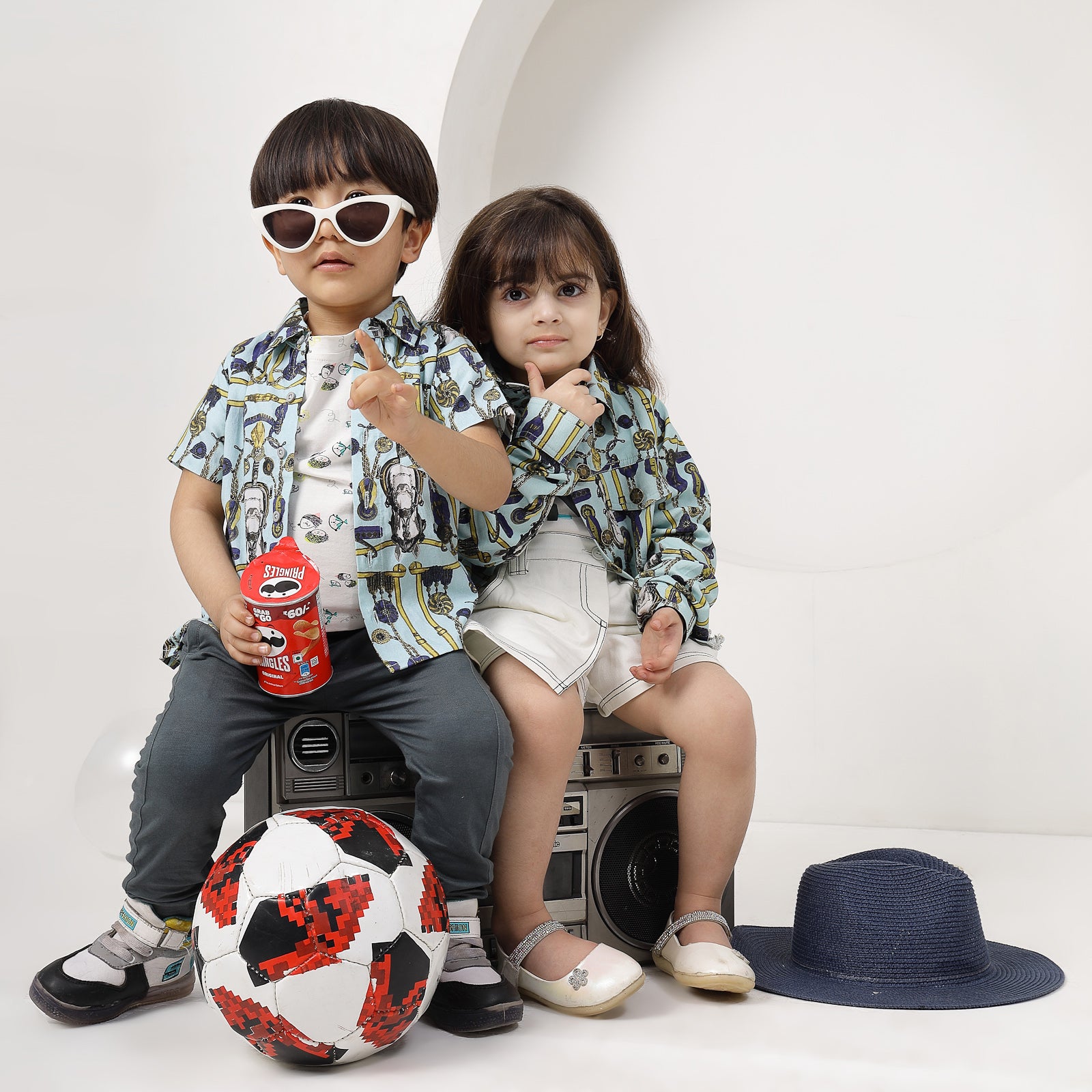 Get ready to steal the show with The Star Power Shirt! This button-down is a cool classic with a bold twist—lightweight woven cotton poplin keeps it comfy, while the oversized blotch print makes sure it stands out. Whether layered over a favorite tee or worn solo, this shirt is all about effortless style with a playful edge. Finished with a handy patch pocket for extra charm, it’s the perfect pick for young trendsetters who love to shine!