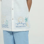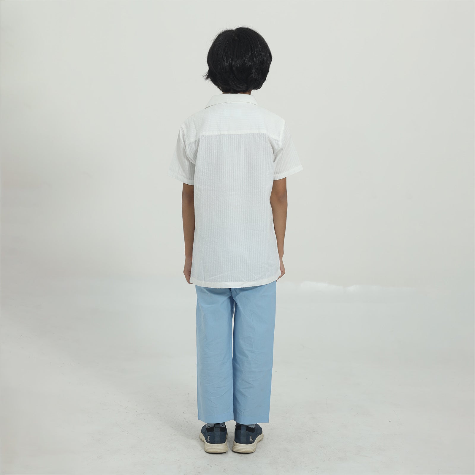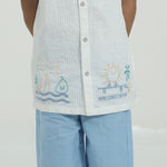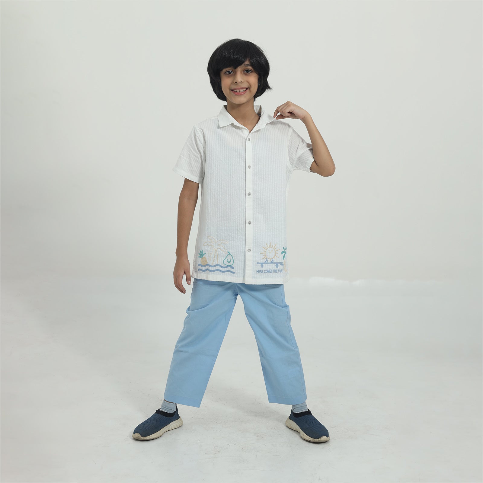 Made from soft white waffle cotton, this shirt blends comfort with playful charm. Designed with a classic cutaway collar, half sleeves, and fun embroidery at the front hem, it’s finished with signature Cookie Pookie buttons - perfect for little adventurers.