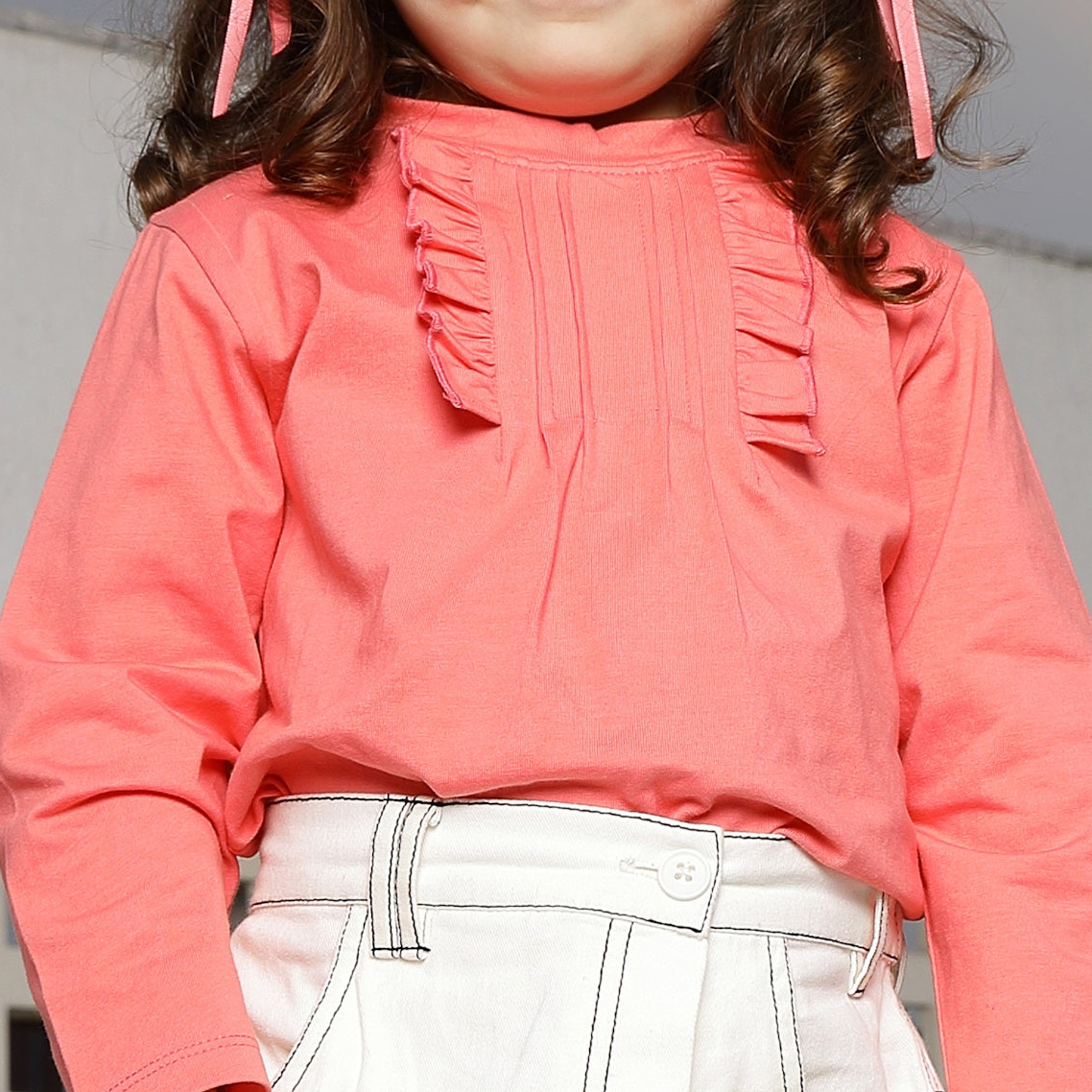 Sweet, stylish, and comfy—this Coral Breeze Ruffle Knit Top is made for little moments of joy! Crafted from soft knit fabric in a cheerful Coral shade, it’s designed to keep your toddler cosy while adding a playful touch to their day. The round neckline and full sleeves offer warmth, while the ruffle and tuck details on the front bring just the right amount of charm, perfect for all-day adventures and fun!