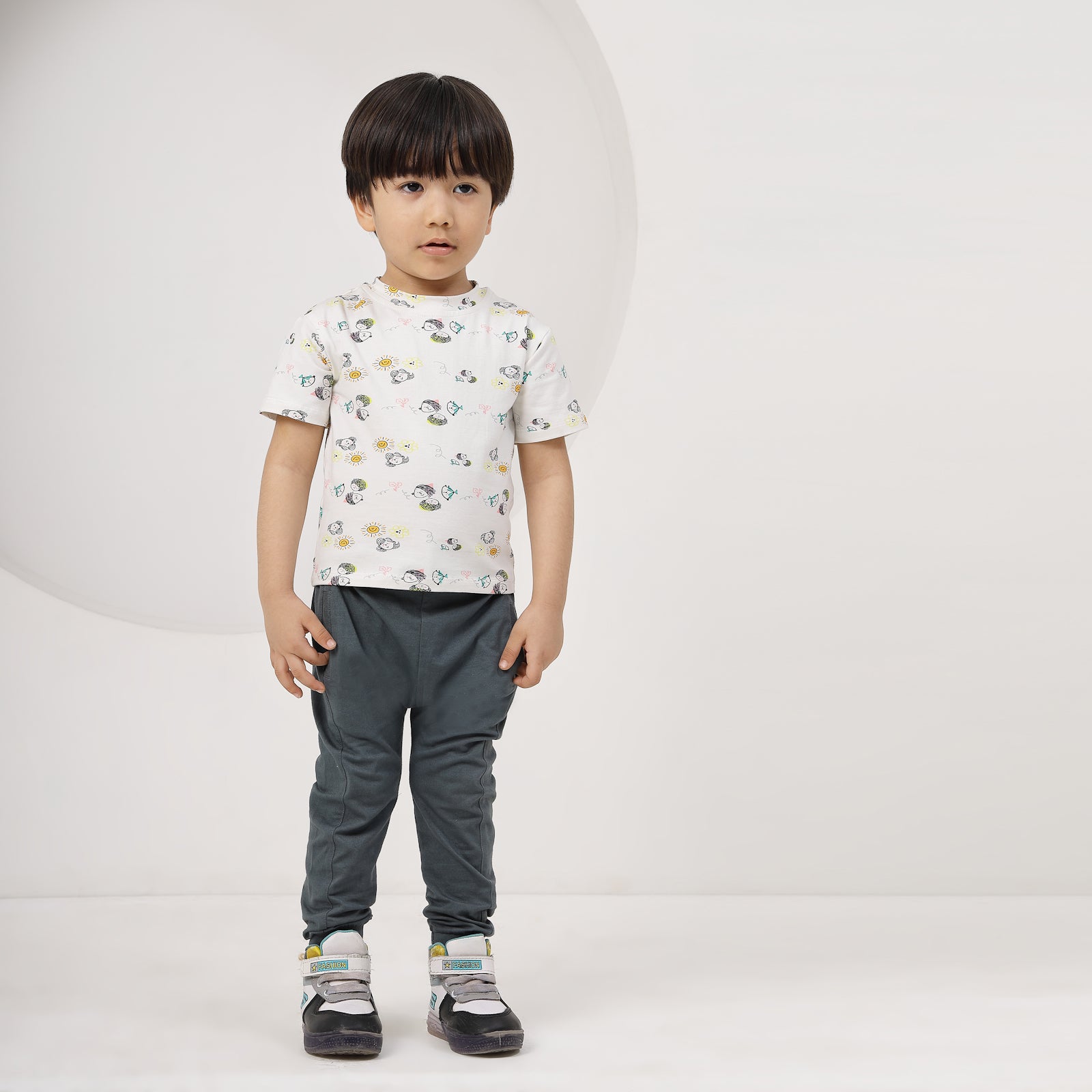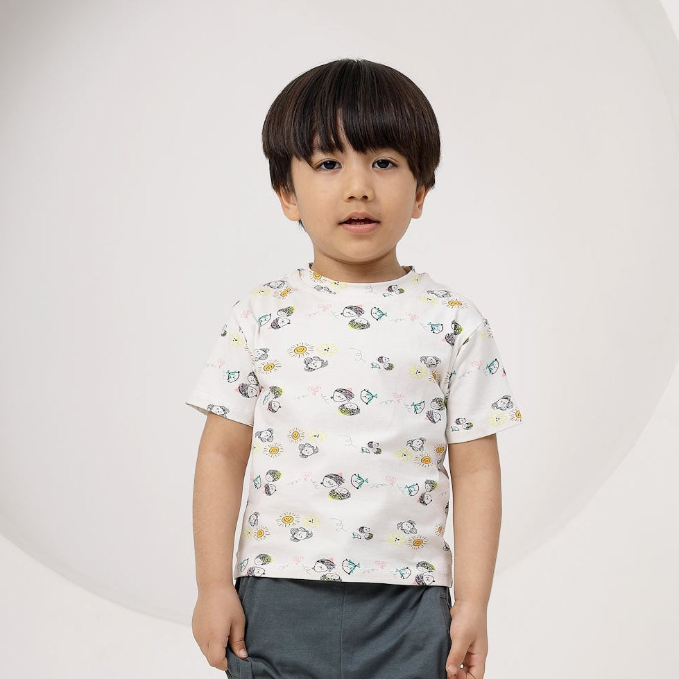 Breathable knit tee with a lively, cheerful print for endless fun.